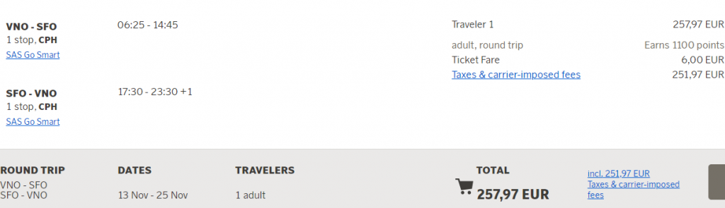 Распродажа у SAS: из Вильнюса в Сан Франциско от 258 евро, из Киева от 300