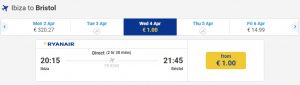 К примеру, за 1 евро найдутся тикеты на перелет Ибица-Бристоль.